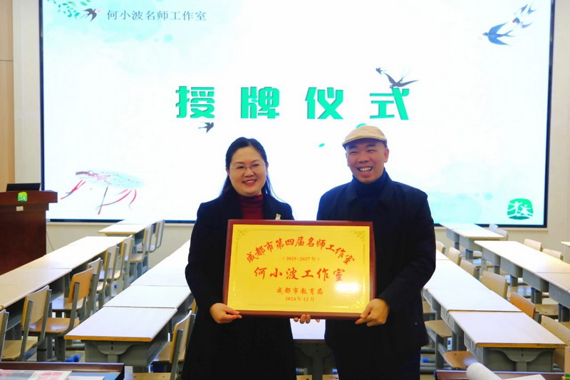 上午,成都市高新区教育发展中心教师发展部部长杨丽对何小波名师工作室申报成功表示祝贺,并为何小波名师工作室授牌。