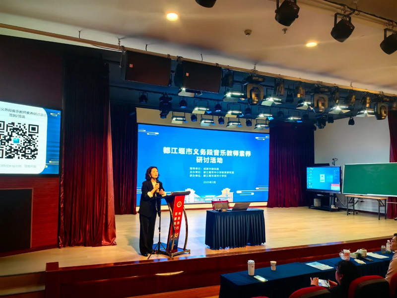 本次活动由成都市教科院指导,都江堰市中小学教育研究室主办,都江堰市灌州小学校承办。活动邀请了四川省学术和技术带头人 李萍老师,为大家做《核心素养下音乐教师专业化发展策略探究》的培训。