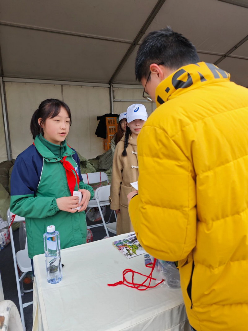 开赛前日,在赛包发放处化身"都江堰文化小使者"。他们主动向参赛者讲述画作背后的历史故事。一位选手赞叹:“这些孩子让我读懂了都江堰的厚重与鲜活”。