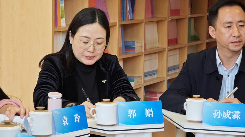 Principal Ma and Principal Zhang's studio members communicate with each other. The members of the studio gathered around to discuss, the principal shared their growth experiences, and the members interacted and exchanged ideas, working together to promote the high-quality development of education.