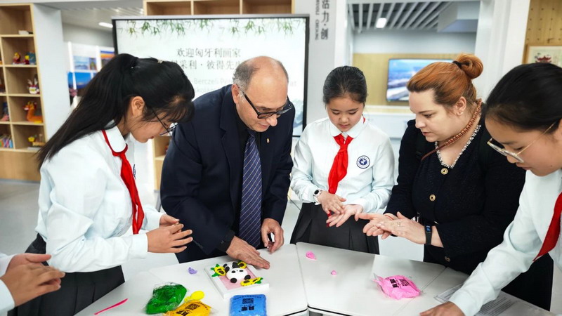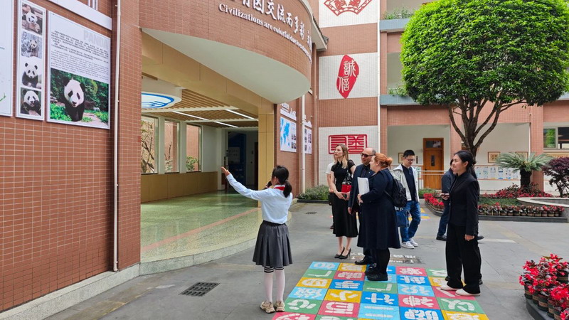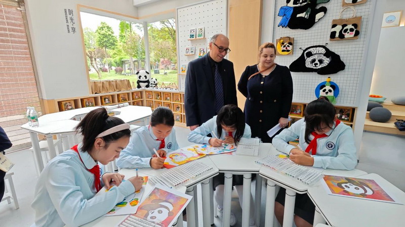 Accompanied by the Red Scarf volunteers, Mr. Peter walked around the Guanzhou campus and had an in-depth experience of calligraphy, panda clay sculpture and other special courses.