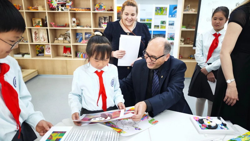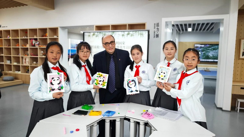 On April 14, 2025, Mr. Peter walked into Guanzhou Primary School and had an in-depth artistic exchange with teachers and students.