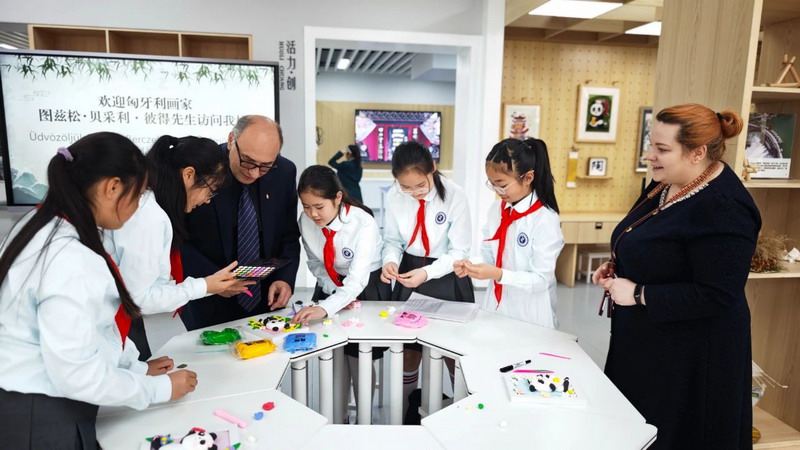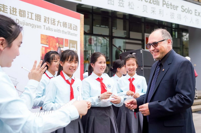 2025年4月14日,“成都-欧洲文化季”首场活动——匈牙利画家图兹松・贝采利・彼得作品展于都江堰市文化馆开幕。本次活动由成都市人民政府外事办公室、匈牙利驻重庆总领事馆、都江堰市人民政府联合主办,李斯特中心-匈牙利文化中心提供支持。作为系列活动的重要环节,彼得先生走进灌州小学,与师生展开深度艺术交流。