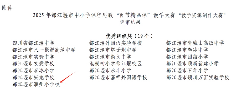 灌州·喜报|我校在都江堰市中小学课程思政“百节精品课”教学大赛“教学资源制作大赛”中喜获佳绩Good News |