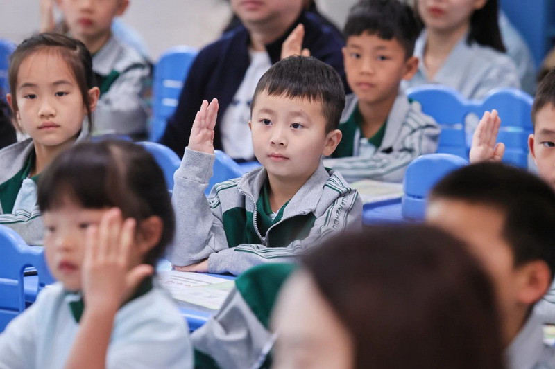 02 活力课堂,趣味探知 推开教室门,一堂堂别开生面的课程正在上演!家长们坐在教室里,沉浸式感受课堂的热烈氛围,看到宝贝们高高举起的小手、自信回答问题的模样,欣慰的笑容洋溢在每个人脸上。