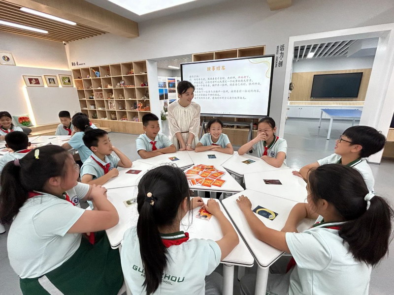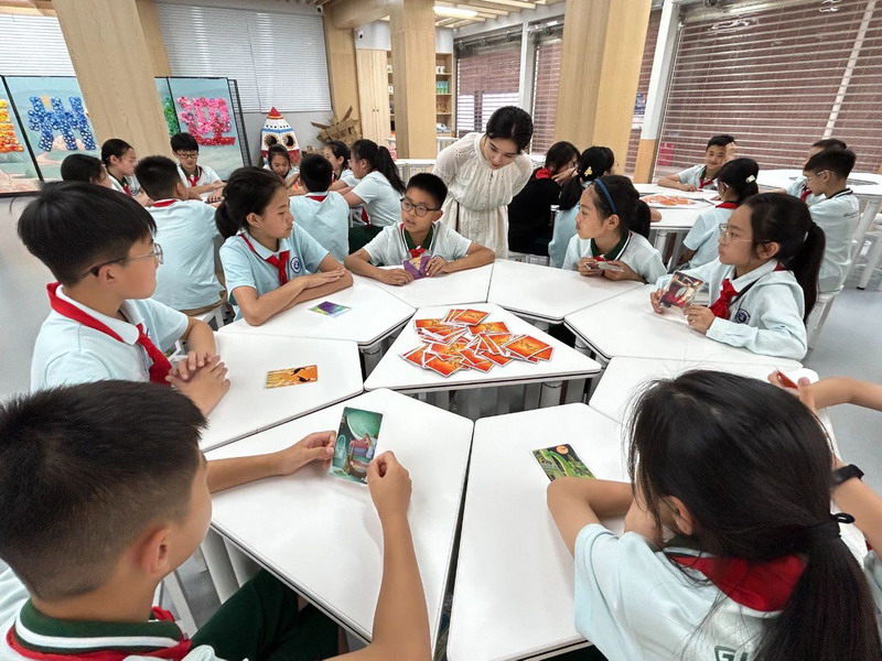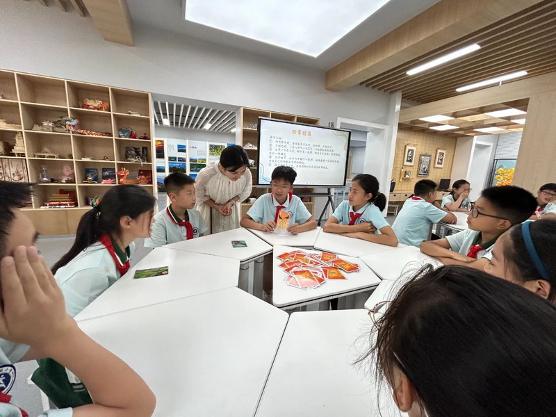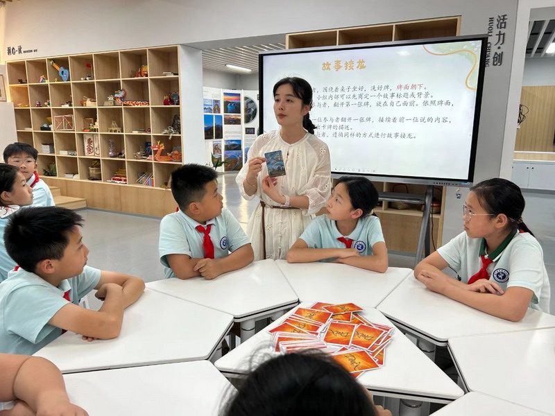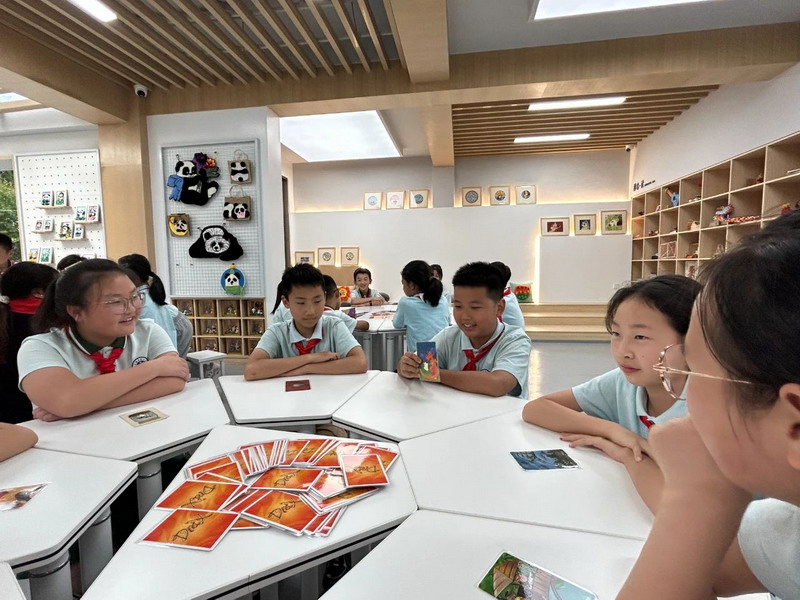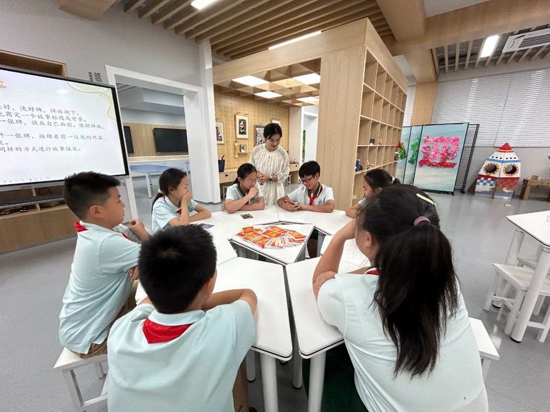 随后成员们进入故事接龙游戏环节,洗牌后商定故事背景。第一位参与者翻开卡牌描述,后续成员依次接龙,大家在奇妙故事中拓宽思维。
