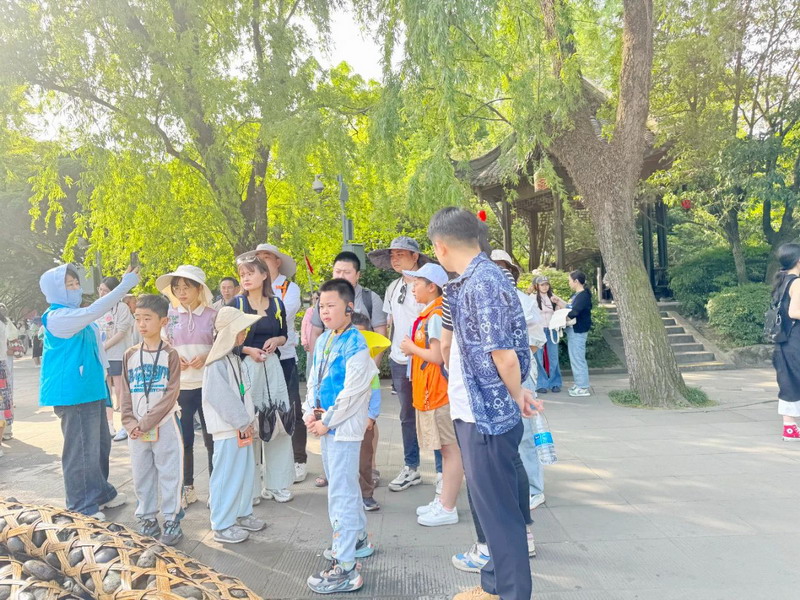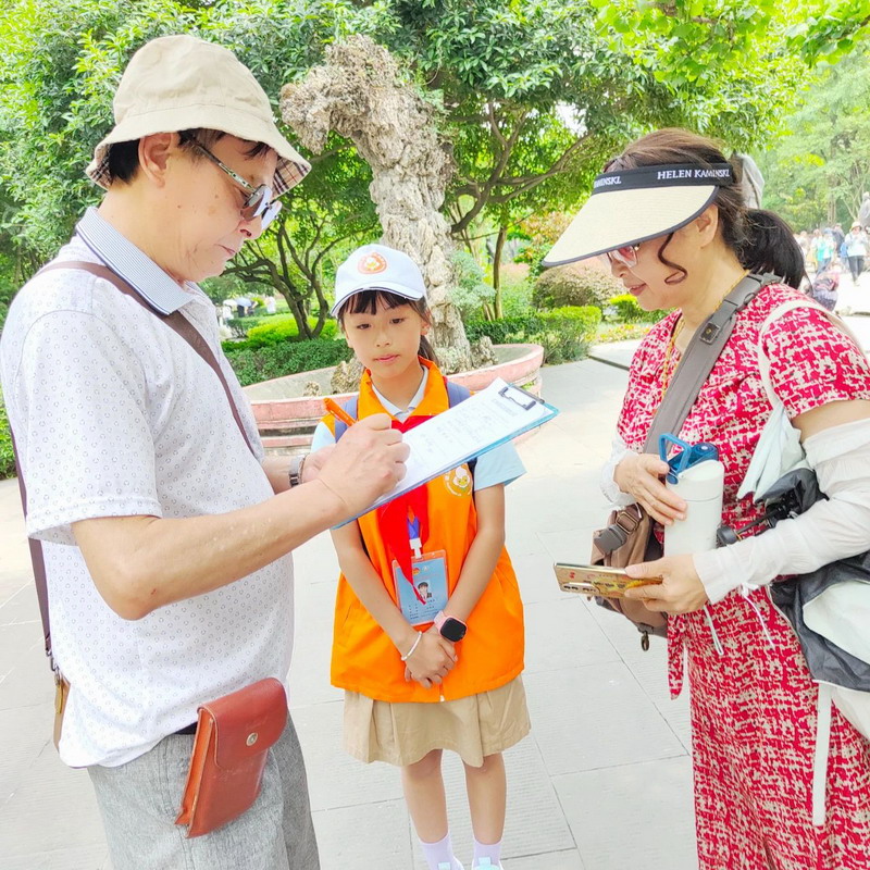 “小橘子”旅游志愿者们身着鲜艳的橙色马甲,就像一个个活泼的小太阳,点亮了景区的每一个角落。他们化身“小小讲解员”,在伏龙观前讲述李冰治水传奇,在鱼嘴旁解析水利工程精妙原理;变身“文明小卫士”,礼貌劝阻不文明行为;成为“贴心小向导”,主动为游客们提供了热情周到的服务。稚嫩的声音、认真的态度,赢得游客连连称赞。