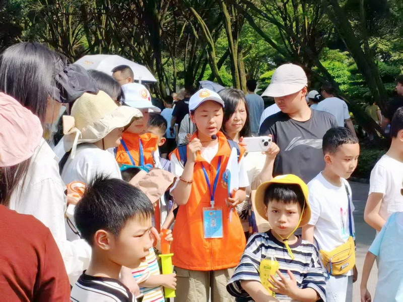 During this holiday in Dujiangyan , 16 "Little Orange" tourism volunteers from Guanzhou Elementary School stayed at their posts, providing warm and convenient services and professional explanations to tourists from all over the world, becoming a beautiful scenic spot in the scenic area!