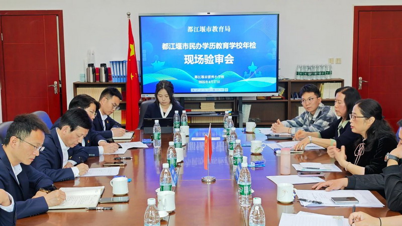 To thoroughly implement the guidelines of Dujiangyan Municipal Bureau of Education on standardized management of private schools and enhance education quality and management efficiency, the 2024 annual inspection team (a multi-departmental group from the Bureau) visited our school on April 27, 2025, for a special review.