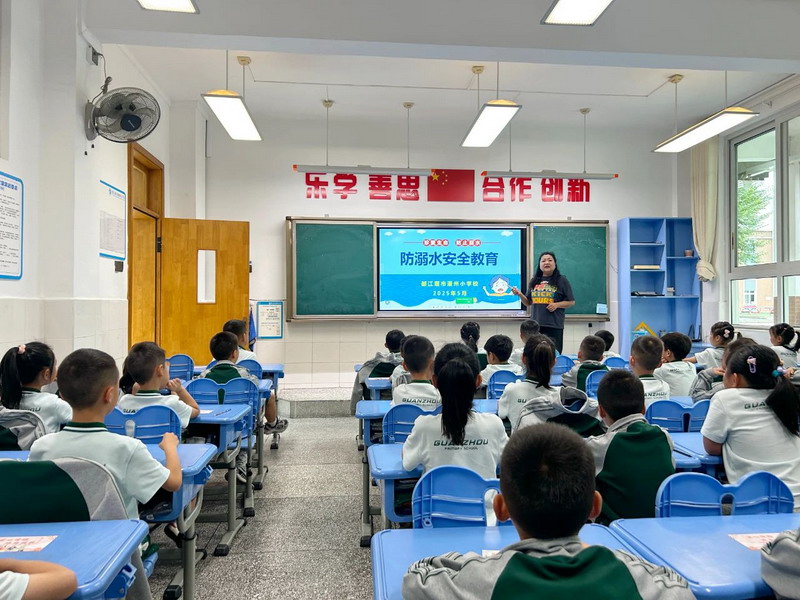 Each class teacher explains drowning prevention knowledge in detail by combining safety guidelines.