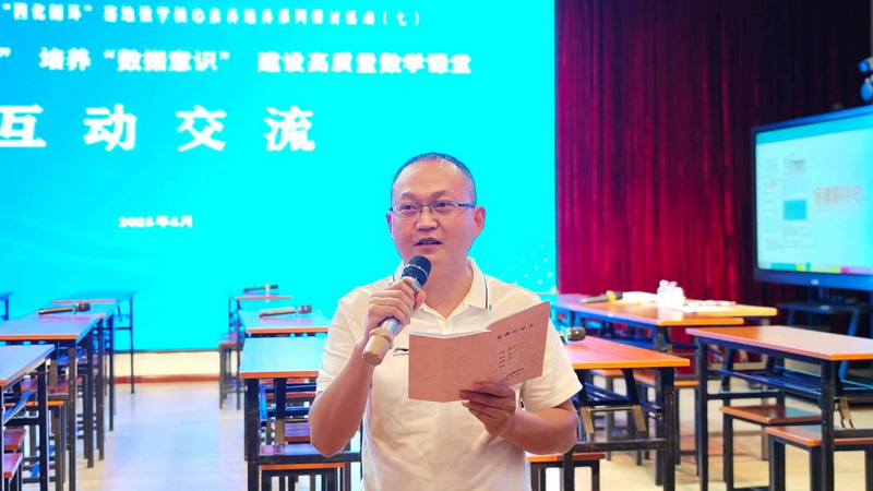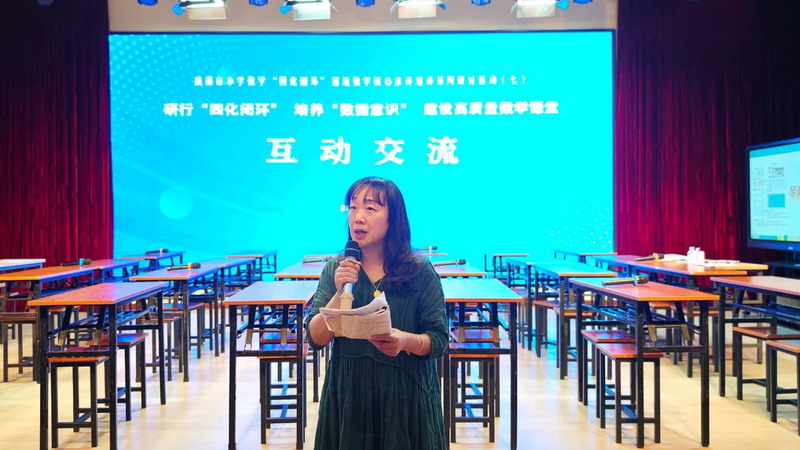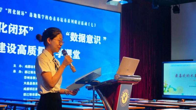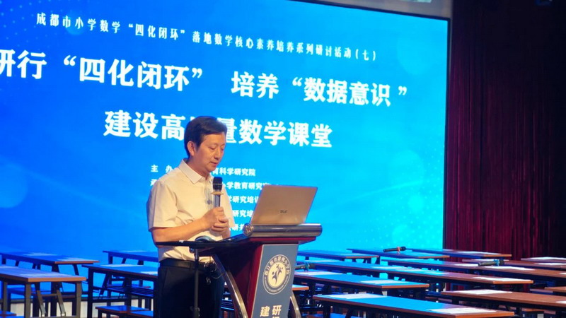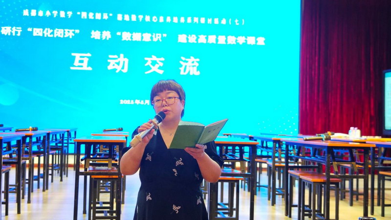 崇州市教育研培中心余凤君老师从理念出发,做《基于素养“四化闭环”, 培养学生数据意识》专题交流,强调以“四化闭环”培养数据意识应做好关键四步:结合实际情境、拉长学习过程、解读数据发现问题、做出合理推断。