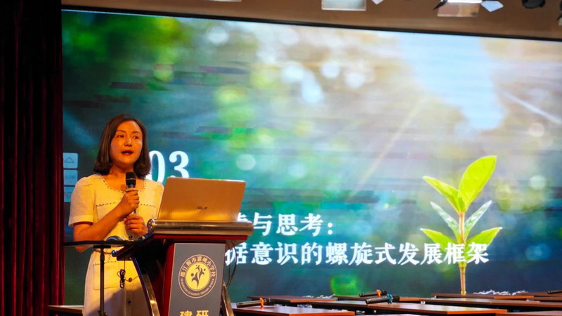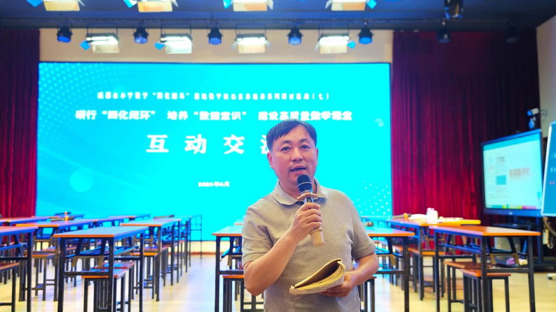 Teacher Hu Tao of Dujiangyan Primary and Secondary School Teaching and Research Office communicated from three dimensions: teacher empowerment, strategy empowerment and literacy empowerment.