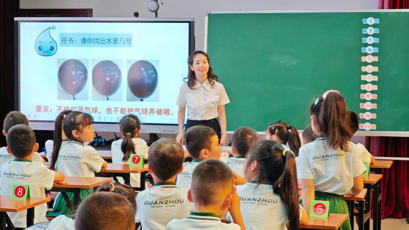 Liu Yajie of Guanzhou Primary School taught Grade 1 ‘Observing a Cup of Water’, focusing on cultivating the scientific observation skills of lower grades students.