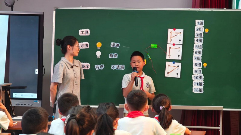 Liu Keyan of Juyuan Primary School brought the fourth grade ‘How the inside is connected’, focusing on inspiring students to understand the principles of science in the hands-on operation.