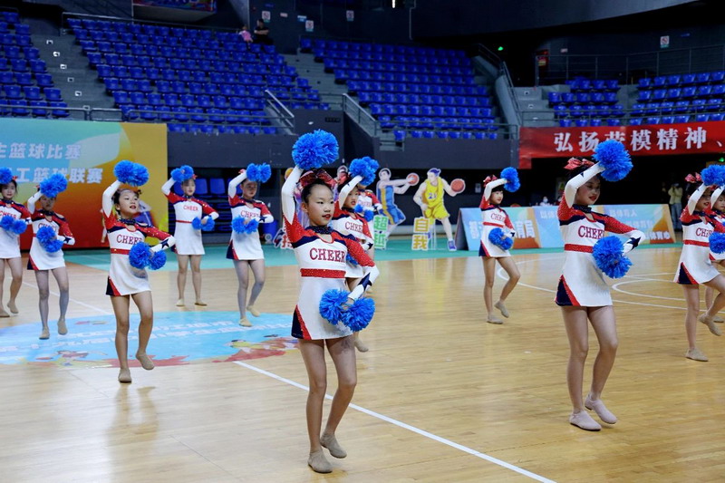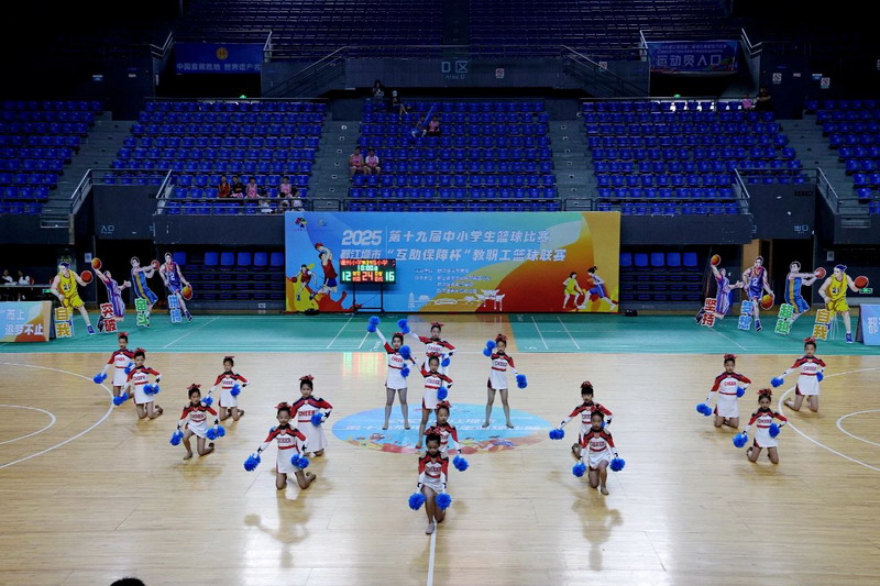 在都江堰市女子乙组篮球冠亚军争夺赛中场,我校刚刚斩获省赛一等奖的啦啦操队惊艳亮相。伴着动感节拍,17名队员惊艳亮相,蓝色花球划出璀璨光轨,她们用行云流水的队形变换诠释青春韵律,以省赛级水准点燃观众席,为焦灼的赛场注入澎湃能量,助燃篮球女将们的决胜斗志。