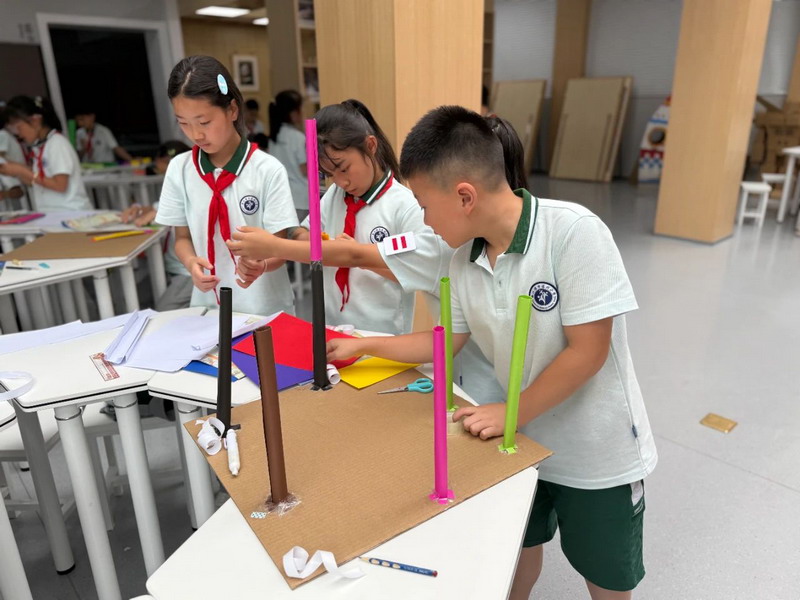 六年级选手以纸吸管为材料,搭建直冲“云霄”的高塔,通过精巧的结构设计实现惊人高度。选手们通过PPT、实物演示等方式,激烈争夺“最强工程师”荣誉。