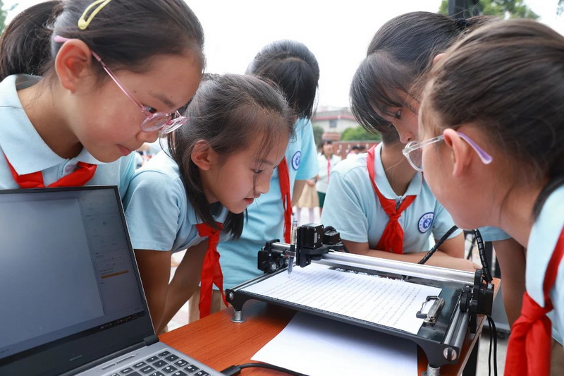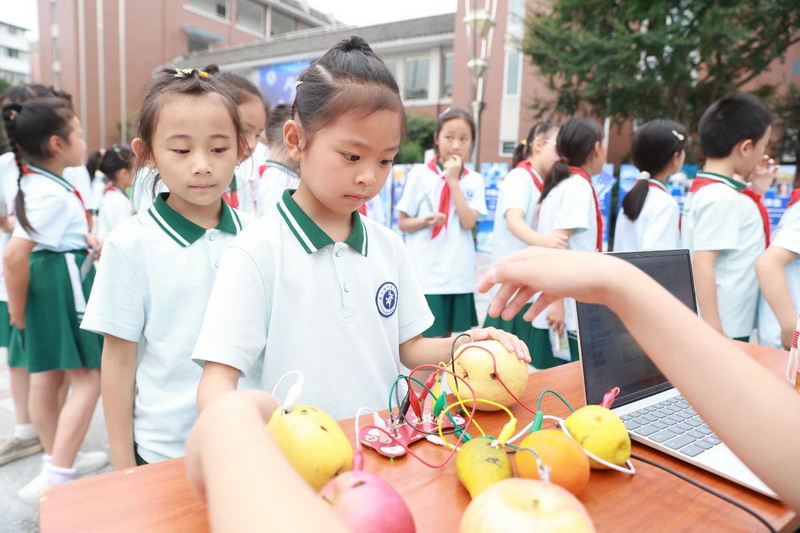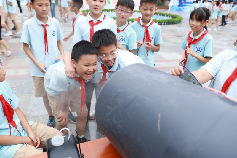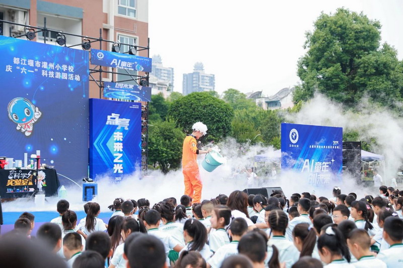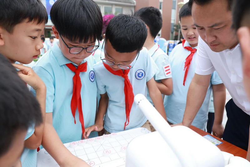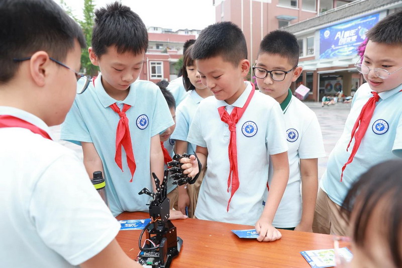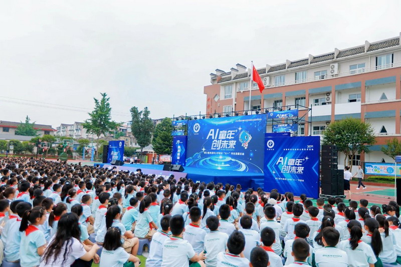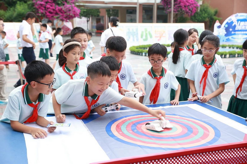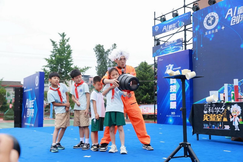 At 9 a.m., the playground became a "first classroom" for science education. Principal Ma urged students to evolve from AI experiencers to future creators.