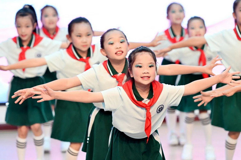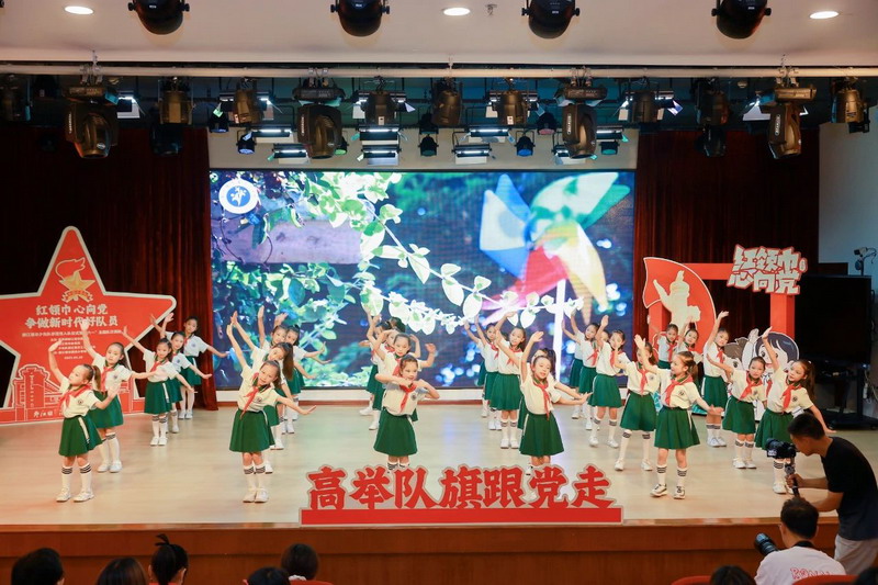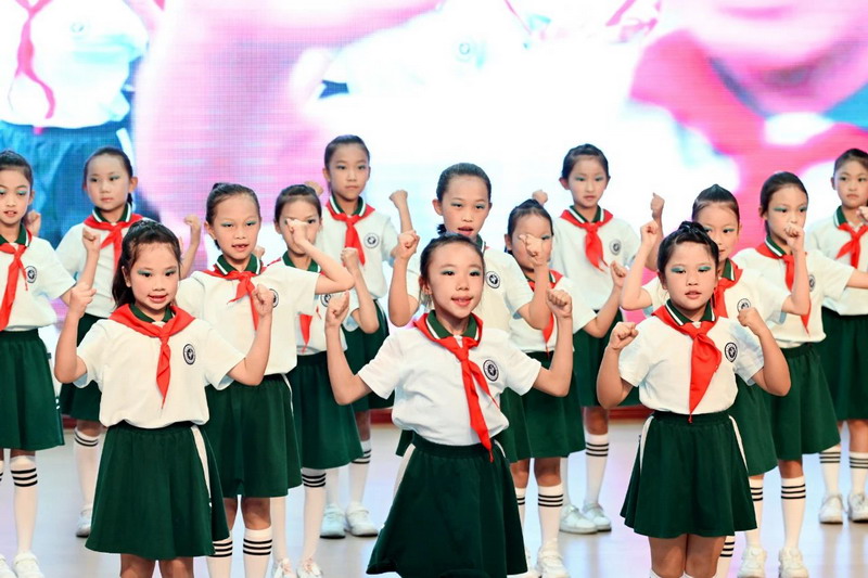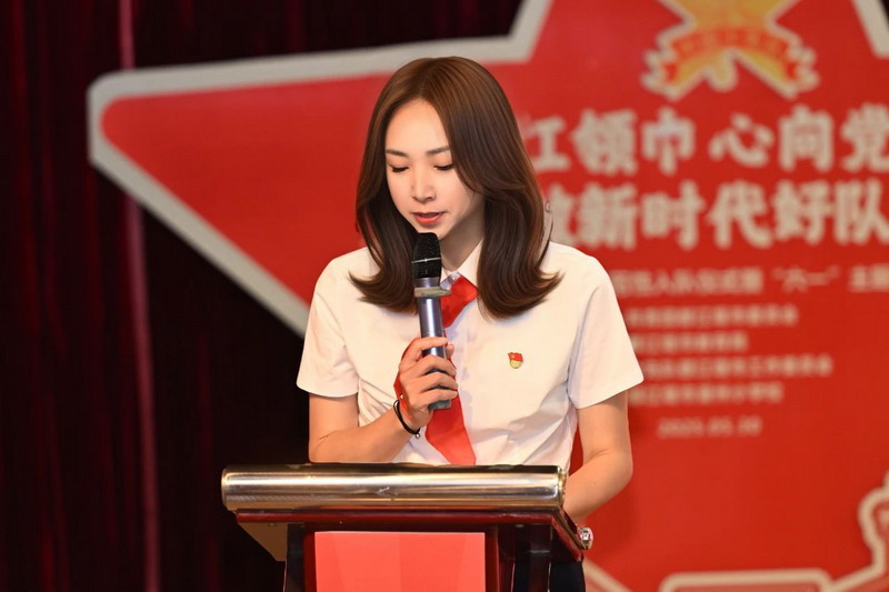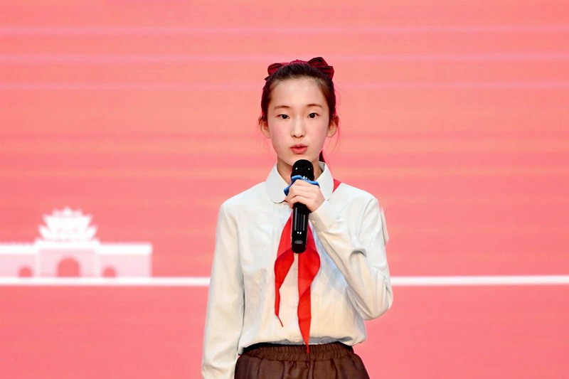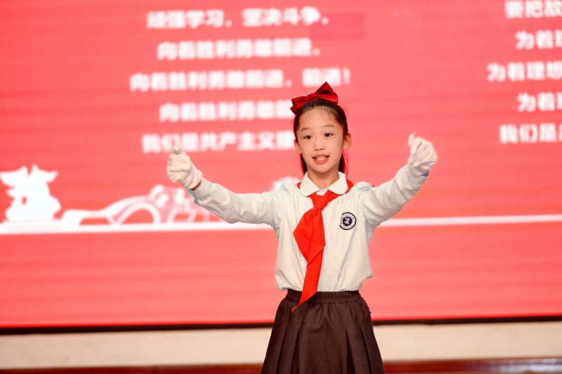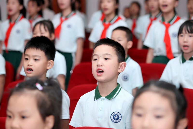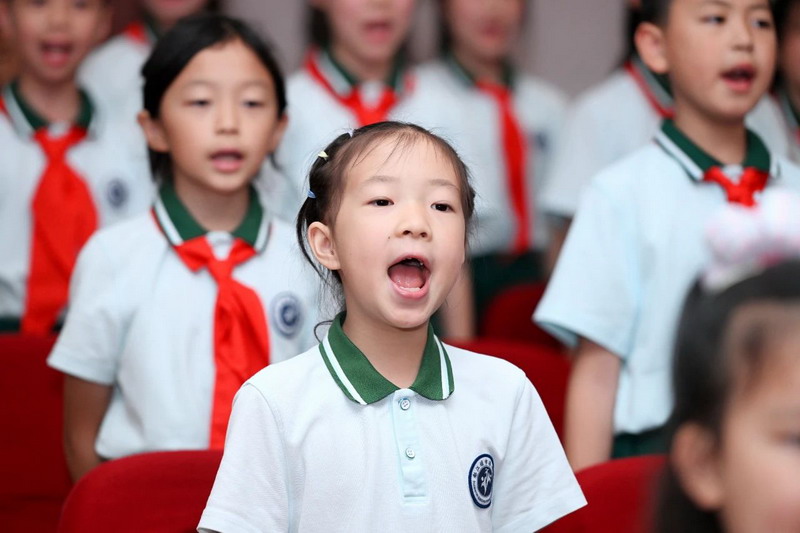 全体少先队员高唱《中国少年先锋队队歌》。歌声雄浑嘹亮,激昂的旋律回荡在会场的每一处角落,唱出了他们作为少先队员的自豪与担当。