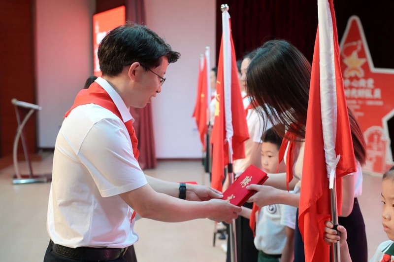 学校优秀党员老师代表为接班人系上鲜艳的红领巾,传承革命意志;老队员献上寄语卡片,祝愿他们茁壮成长。这不仅是荣誉的传递,更是责任与使命的交接。