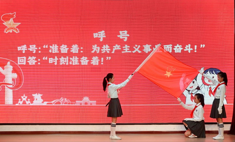 “准备着:为共产主义事业而奋斗!”“时刻准备着!”铿锵有力的呼号声中,入队仪式圆满礼成。队员们在响亮的呼号声中坚定了自己的前进方向。