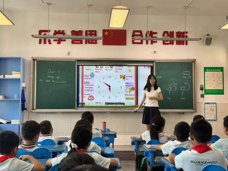 In English-Science classes, students used words like "tall” “long" to study animal features. English-Math classes learned clock vocabulary for time-telling, advancing both language and thinking skills.