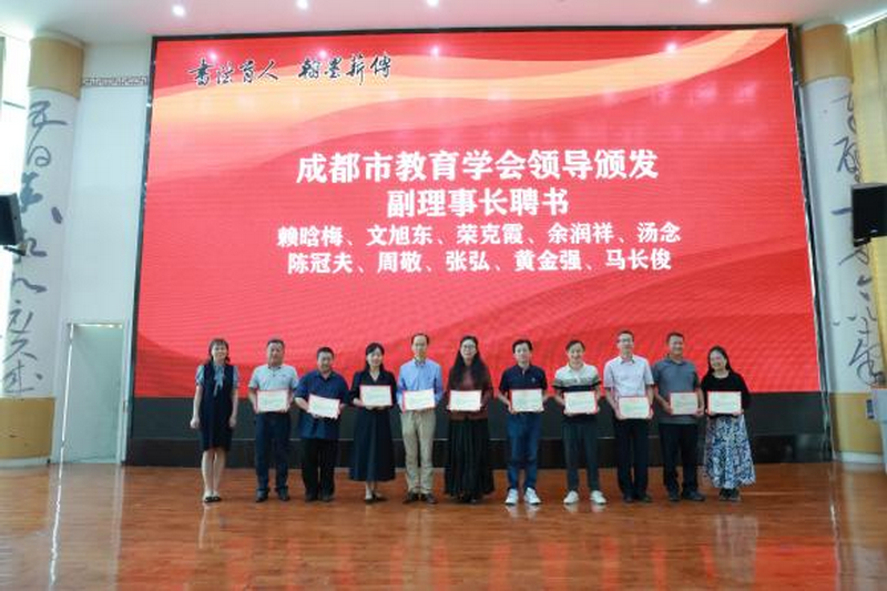 2025年6月5日,“书法育人 翰墨薪传”——2025 年成都市书法教育研讨会暨成都市教育学会书法教育专业委员会第五次会员代表大会,在成都市双流区棠湖中学实验学校顺利召开。成都市教育学会会长赖石梅亲临现场祝贺并发表讲话。此次会议选举产生了第五届理事会,成都大学教授蔡育坤当选为理事长;文旭东当选为常务副理事长;赖晗梅、余润祥、汤念、陈冠夫、马长俊、周敬、张弘、黄金强、荣克霞为副理事长。