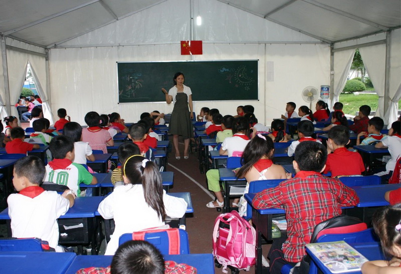 2008年汶川地震后,师生在帐篷中重启书法课,“以墨香抚平创伤”。