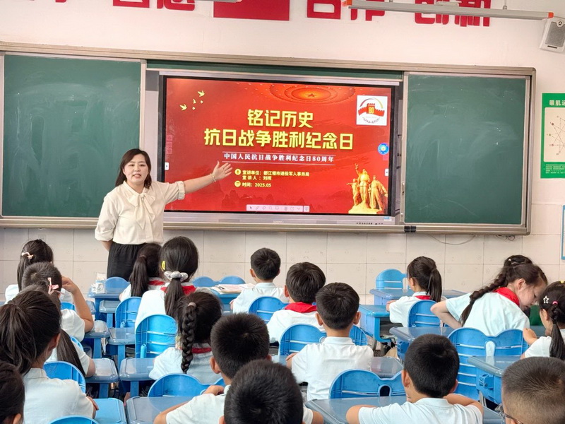 2.6班庞奕可爸爸邀请都江堰市烈士陵园讲解员为孩子们进行爱国主义教育《铭记历史——抗日战争胜利纪念日》。