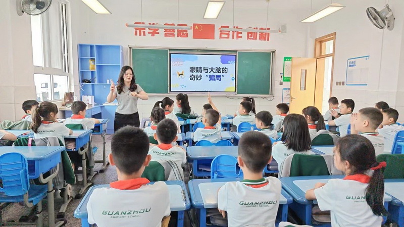 3.5班王睿涵姐姐带来《眼睛与大脑的奇妙“骗局”》一课,涵涵姐姐从大小错觉、动3态错觉两个方面,让孩子们明白了眼见不一定为实。