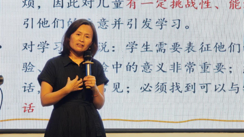 讲座现场,高教授以“学习活动怎样真正达到效果?”“学生需要达到怎样的理解?”等直指教学核心的问题为引子,与教师们展开热烈探讨。她时而抛出案例引发思考,时而倾听教师困惑,在一来一回的问答中,带领大家抽丝剥茧,逐步揭开“好课堂”的本质——从活动设计的逻辑到学生思维的外显,从目标的精准设定到效果的可观测性,层层深入,让教师们对“何为好课堂”有了更具象、更深刻的理解。