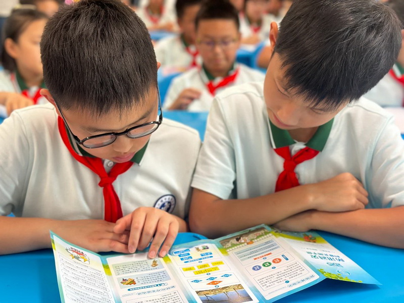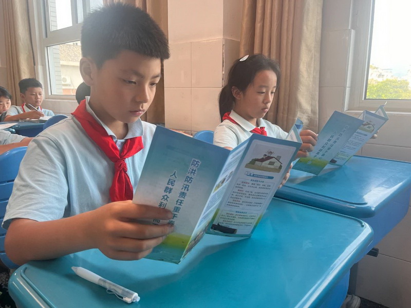同学们通过防汛手册认真学习了汛期形成的原因及汛期引发的自然灾害、应对自然灾害时的避险技巧、防溺水等知识。通过学习切实提高同学们面临自然灾害时的自救能力。