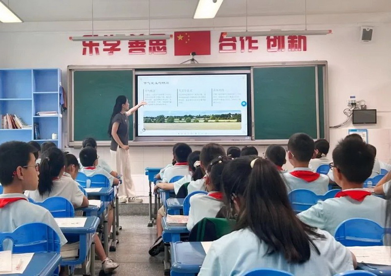 “倏忽温风至,因循小暑来”——袁丽蓉老师展开小暑的节气画卷,蟋蟀从田野迁居墙角,雏鹰在高空练翅。课堂上,33℃的暑气数据与“小暑温暾大暑热”的农谚相映成趣,让孩子们看见科学与民俗的奇妙共振。