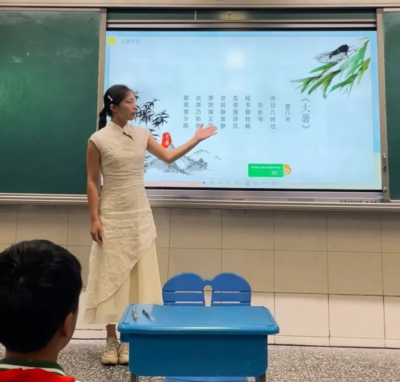 Teacher Wu Xinyue used Fan Chengda's poem as a reference to guide students in decoding the agricultural connotation of "busy harvesting and busy planting" in Mangzhong.