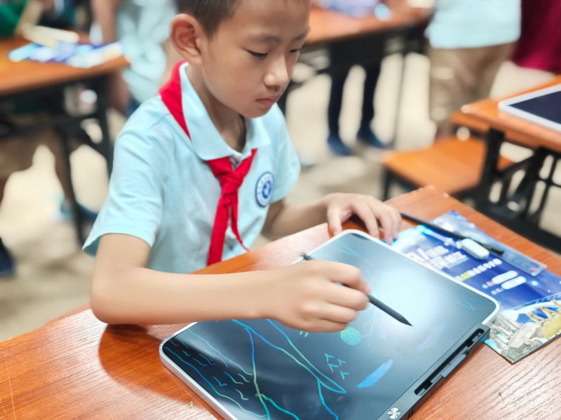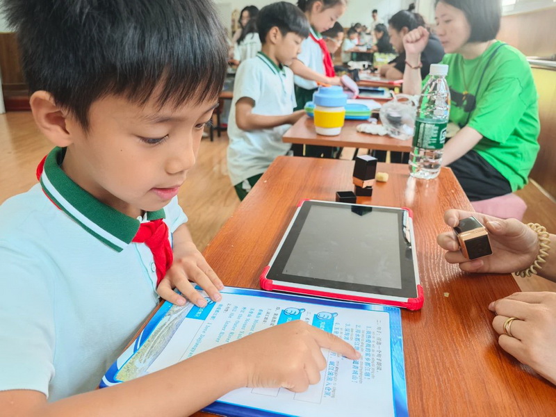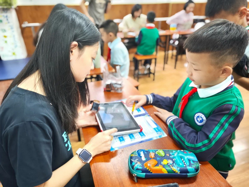 The kids classified images of plants and cultural relics on screen, with image recognition technology both "posing questions" and "grading answers." When encountering video scenarios of "tourists littering," they instantly transformed into "civilized tour guides," voicing the correct responses—scientific observation and civic literacy, it turned out, could be learned through such interactive fun!