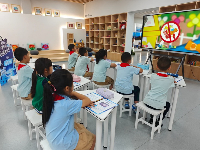 AI识物小专家上线!孩子们对着屏幕里的植物、文物图片分类,图像识别技术“出题”又“判卷”;遇到“游客乱扔垃圾”的情景视频,他们立刻化身“文明小导游”,用语音说出正确做法——科学观察与文明素养,原来可以这样互动学习!