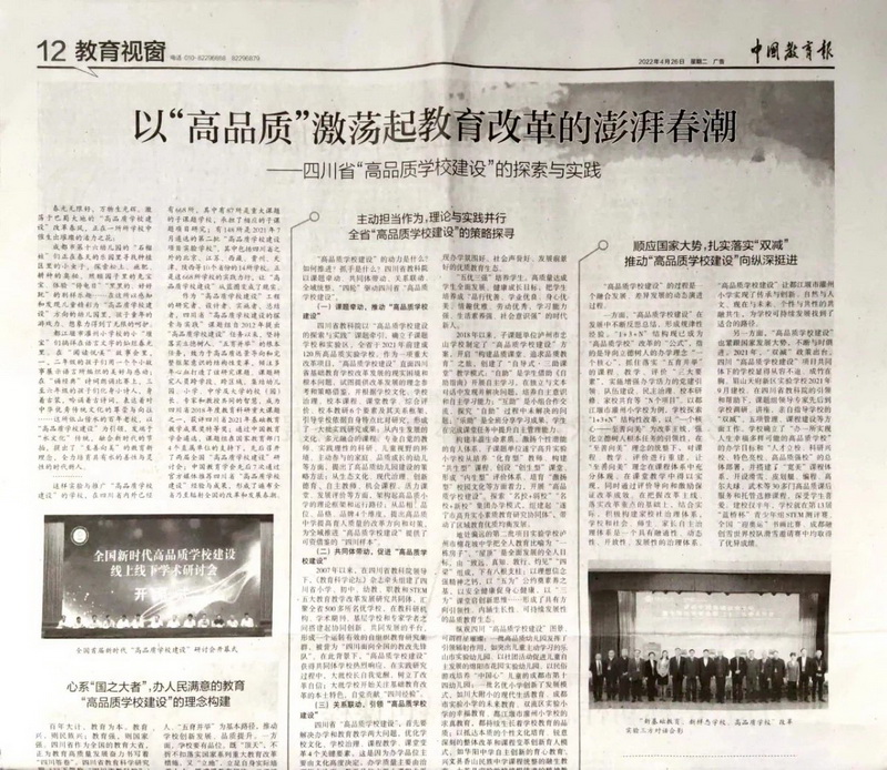 为深化新时代高品质学校建设成果的总结与推广,近日,省级重点课题《新时代高品质学校建设成果的深化与推广研究》成果申报指导会在我校顺利召开。东北师范大学柳海民教授、成都市教育科学研究院毛道生院长(课题主研人员)受邀参会,为课题成果申报工作提供专业指导。