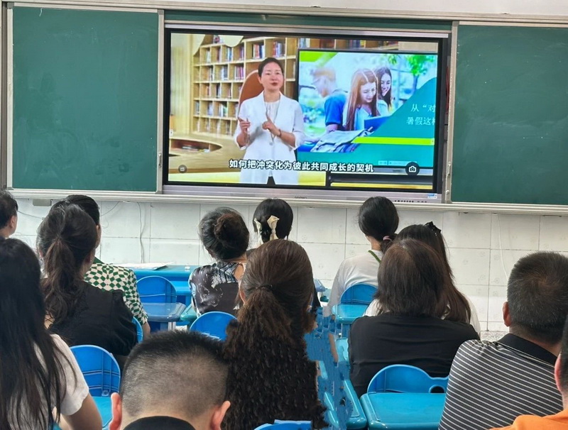 At the parents’ meeting, parents watched the guidance video released by Chengdu on “Doing a Good Job in Students’ Summer Mental Health Work” with great concentration.