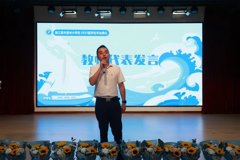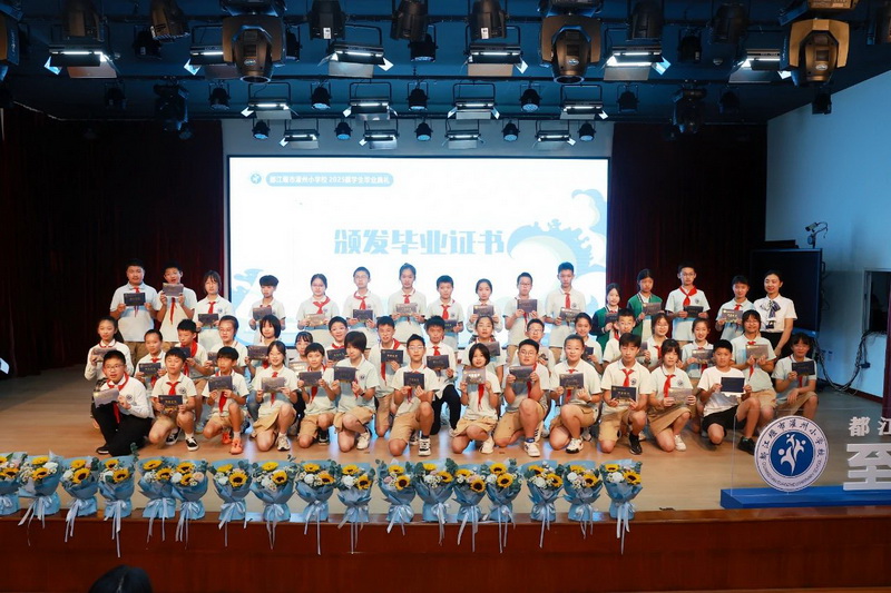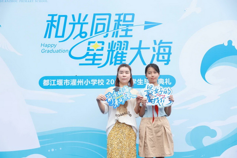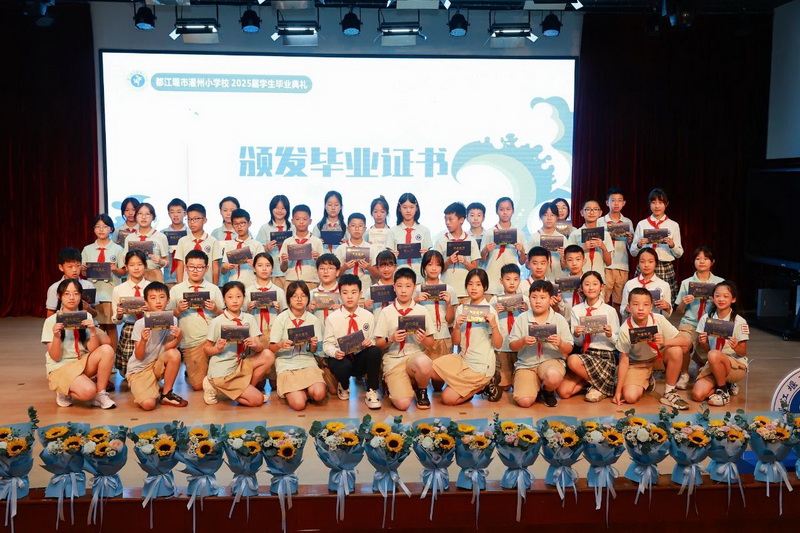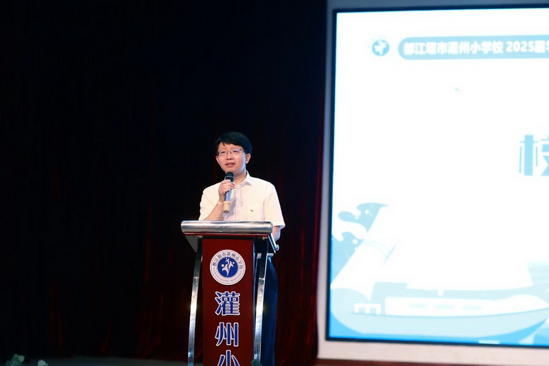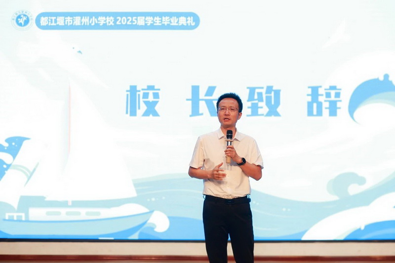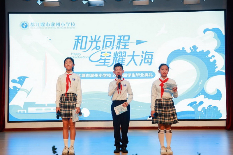夏风裹着蝉鸣漫进校园,黄葛树叶筛下碎金,三角梅花垂着淡紫色的梦——7月4日,灌州小学以“和光同程 星耀大海”为笺,为2025届毕业生写下最后一页童年。