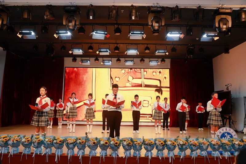 “粉笔写旧岁月,目光种出新芽。”诗朗诵的童声里,藏着未说尽的话:“您教过我算错的题,擦过我摔倒的泪,说过‘你可以’……”话音未落,教师席已泛起潮。