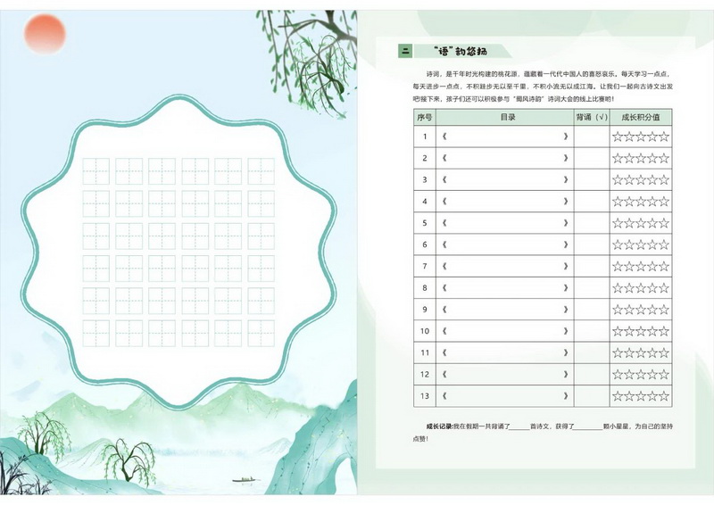 “语” 墨飘香:每日练习楷书字帖,夯实汉字基础,培养专注品格。
