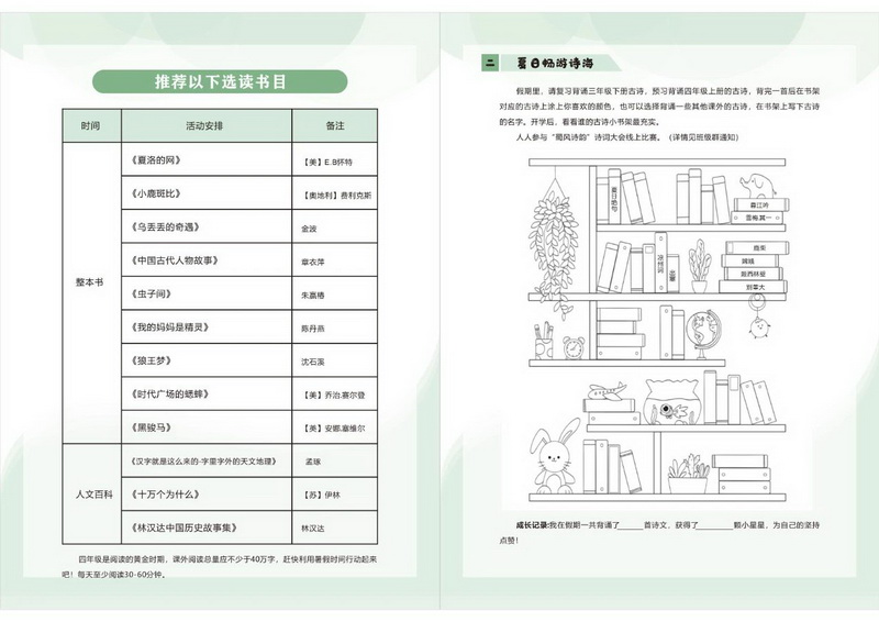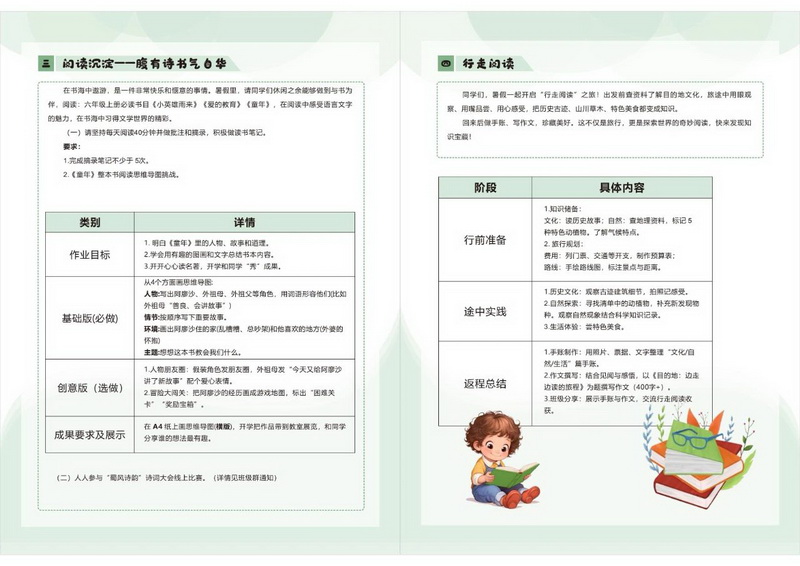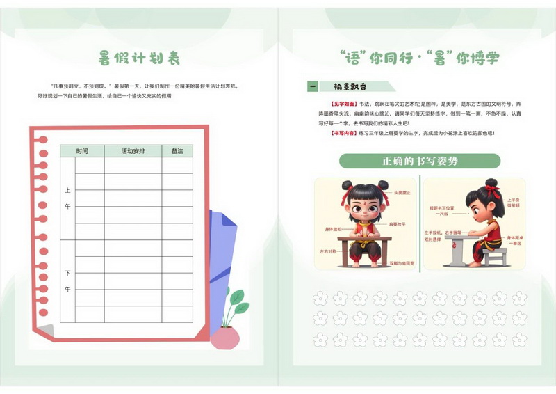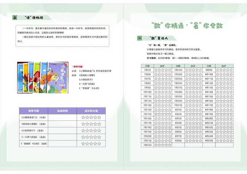 语文素养:通过 “每日练字”“整本书阅读” 等任务,将语言建构、思维发展、审美鉴赏、文化传承融入暑期生活。