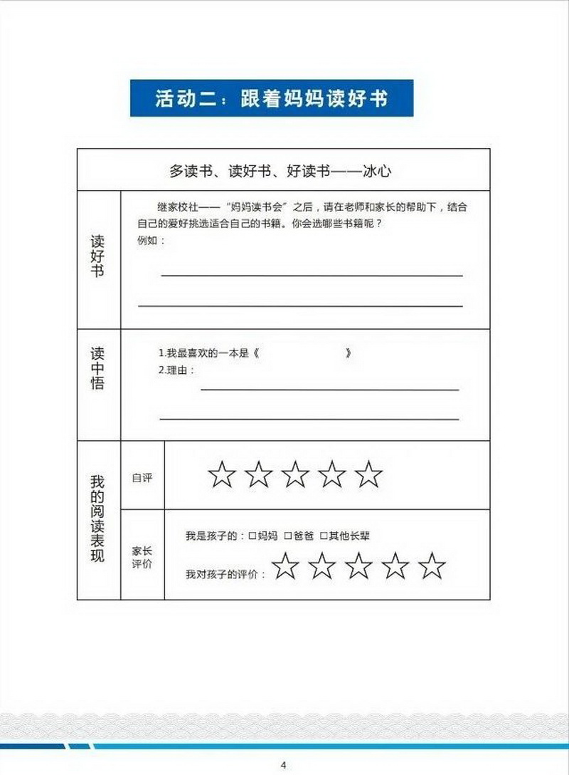 3. “书香致远”阅读计划:鼓励学生在家长和老师指导下,根据兴趣选择好书,记录阅读表现与感悟,促进深度阅读习惯养成。