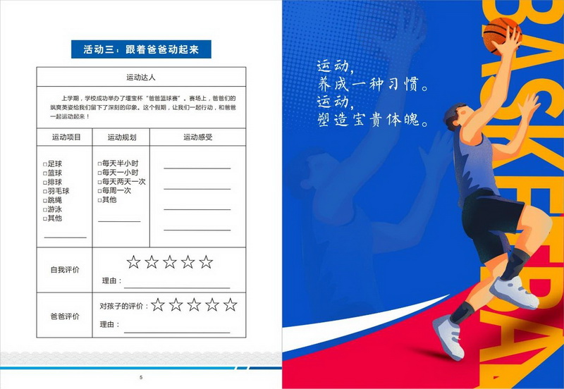 4. “亲子同行”活力时光:鼓励孩子与父亲共同制定运动计划,坚持锻炼,在运动中增进亲子感情。