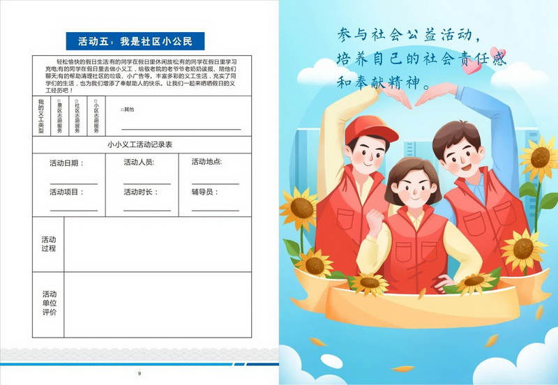 6.“小小义工”活动:鼓励学生走进社区、景区或公益机构参与志愿服务,培养社会责任感和奉献精神。