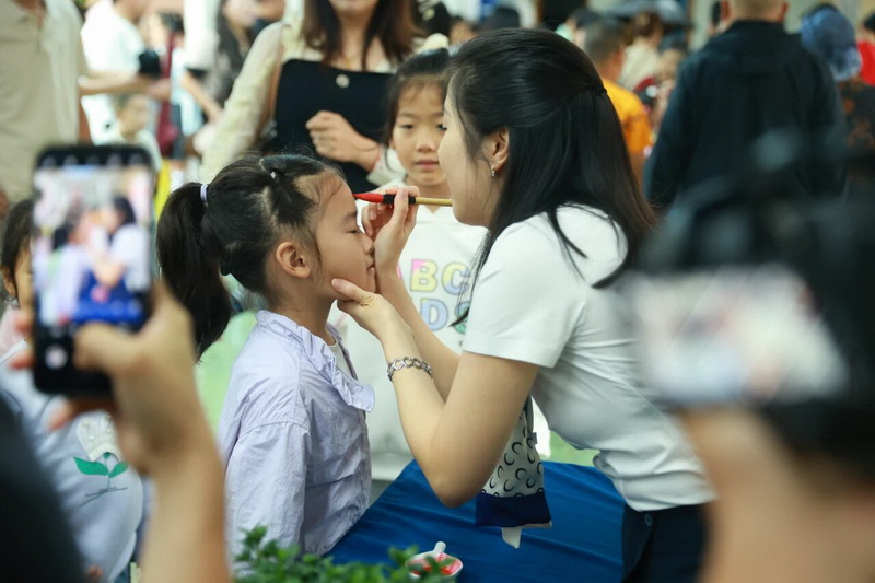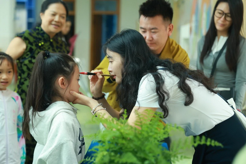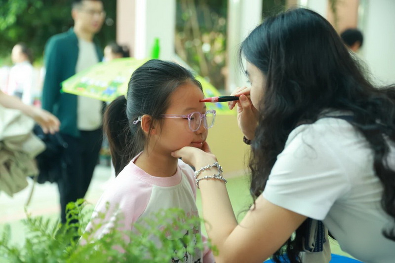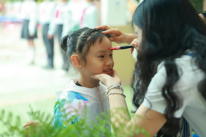 Teachers hold brushes dipped in cinnabar and gently dot a red mole on the children's foreheads. The meaning is to light up the light of wisdom for children, and from then on, they will have clear eyes, bright hearts, and be good at learning and thinking.