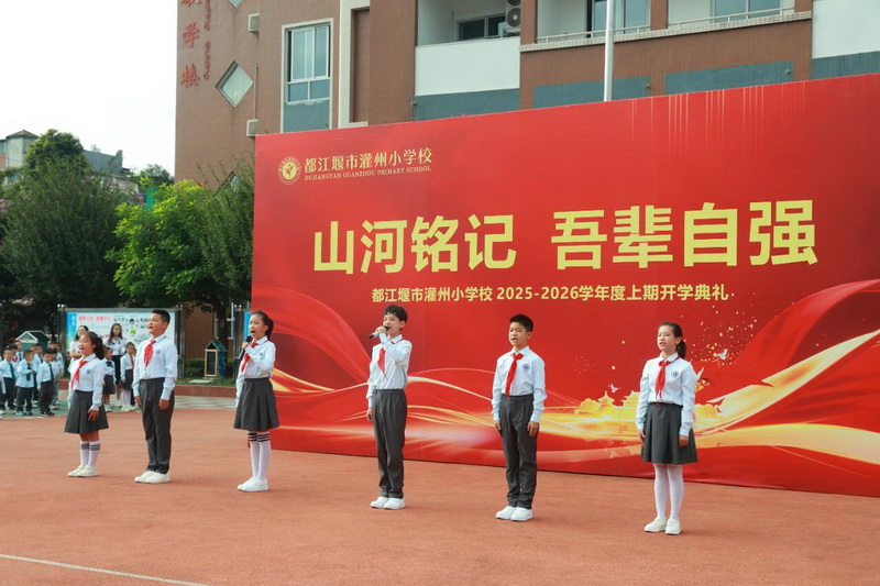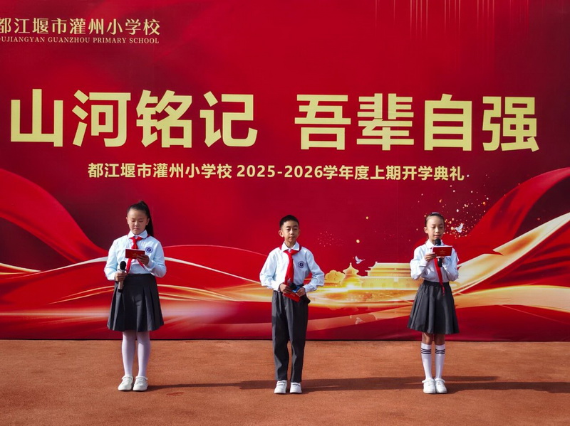 金秋送爽,丹桂飘香。9月1日上午,都江堰市灌州小学全体师生齐聚校园,以"山河铭记 吾辈自强"为主题,隆重举行2025-2026学年度秋季开学典礼。