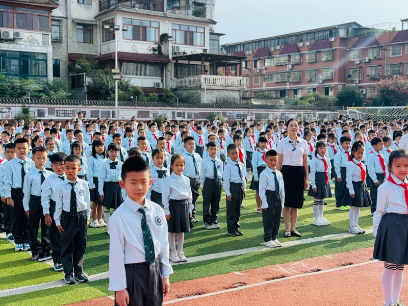 On the morning of September 1, all teachers and students of Dujiangyan Irrigation Project Guanzhou Primary School gathered on the campus to hold the autumn opening ceremony of the 2025-2026 school year.