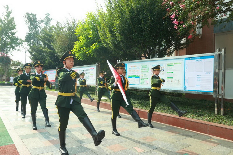 晨光洒满校园,五星红旗在全体师生的注目下冉冉升起,雄壮的国歌声响彻校园。激昂的旋律不仅是对祖国的礼赞,更是对历史的深刻铭记。