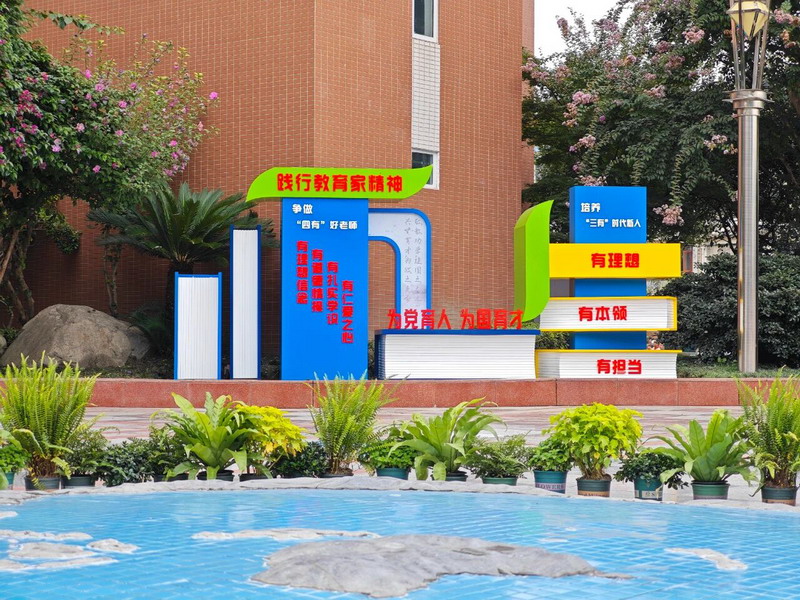 一进校门,你一定会被这座崭新的文化雕塑吸引!以“师生”二字为骨架,书本造型为底座,阳光洒在上面时,仿佛能看到知识流动的光影。这不仅是一座艺术品,更是灌州小学对教育使命的无声承诺。