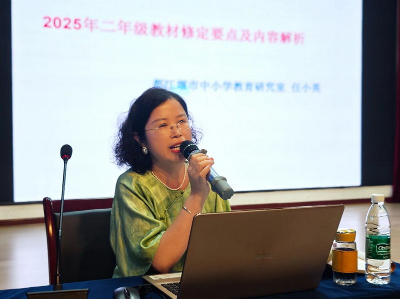 第一位主讲人——教研室的任小英老师。她以《二年级教材修订要点及内容解析》为主题,带我们总览教材修订的脉络与核心,明晰教学方向。